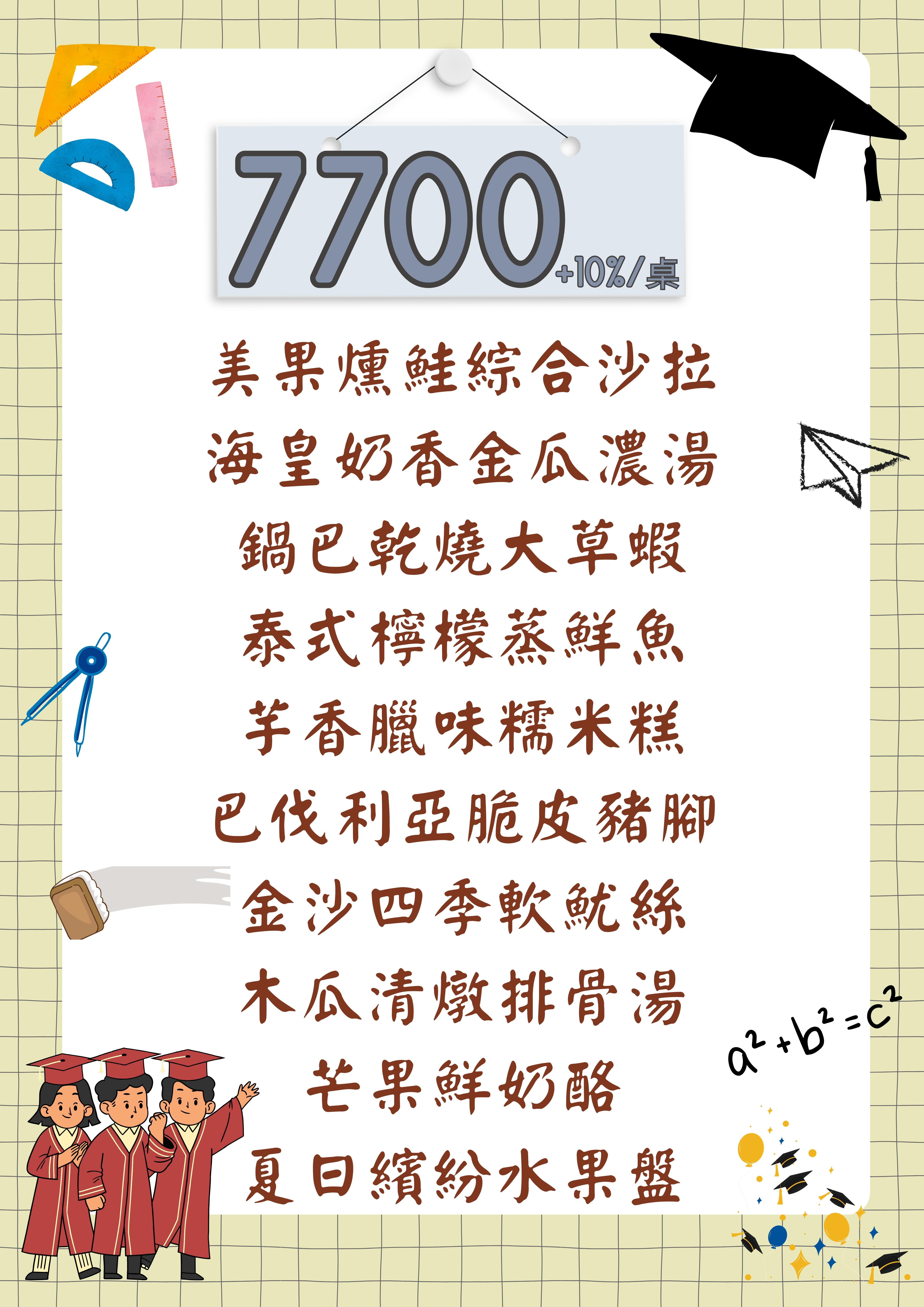 謝師宴感恩桌席NT$7,700 +10% / 每桌